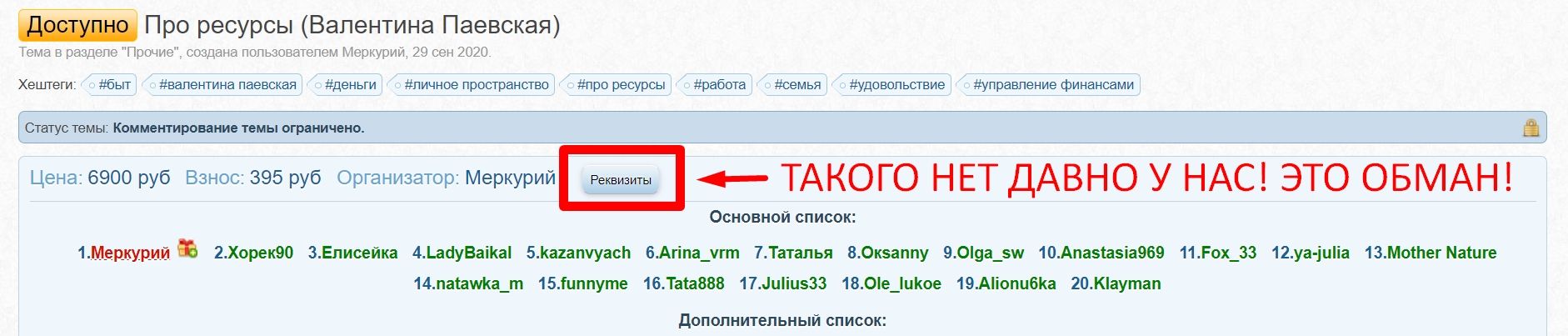 Это РЕКВИЗИТЫ. Это прямые реквизиты, которые вы получаете, когда записались в складчину. Мы давно не даем никаких реквизитов и ничего не продаём в телеграм!